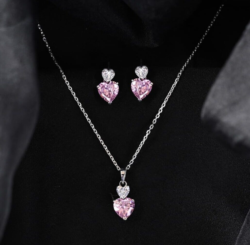 UncategorizedClara 925 Sterling Silver Two Hearts Pendant Earrings Chain Necklace Jewellery Set